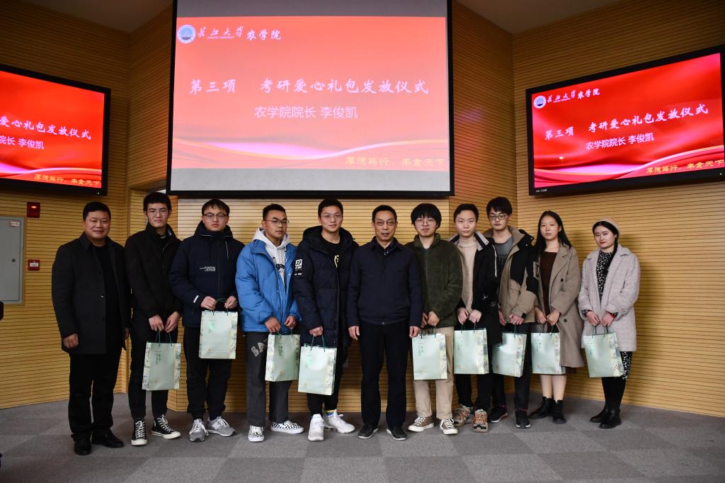 通讯社讯(见习记者 李雨珈/摄 刘金城/文)为调动我院广大考研学子考研积极性,让大家心无杂念、安心考研。12月23日下午,我院于农科大楼1056组织2022年研究生招生考试诚信教育,并为参考学子发放精心准备的“考研爱心礼包”。届时太阳成集团tyc9728院长李俊凯、党委副书记谭亮魁、学工办主任刘庆参加此次活动并发表讲话,18级全体考研学生参加了活动。本次大会由党委副书记谭亮魁主持。