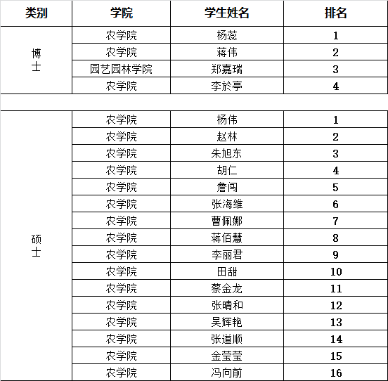 根据《太阳成集团tyc9728关于开展2022年研究生国家奖学金评审工作的通知》和《太阳成集团tyc97282022年研究生国家奖学金评审实施细则》相关要求,经个人申请、一级学科点评审委员会初审、学生答辩、一级学科点评审委员会评审、学院审批等程序,拟推荐杨蕊等2人为2022年作物学一级学科博士点博士研究生国家奖学金获奖人选;经个人申请、学院研究生国家奖学金评审委员会初审、学生答辩、学院研究生国家奖学金评审委员会评审、学院审核等程序,拟推荐杨伟等6人为太阳成集团tyc97282022年硕士研究生国家奖学金获奖人选,现将评审结果进行公示(如有名额追加,按照评审排名依次进行递补)。